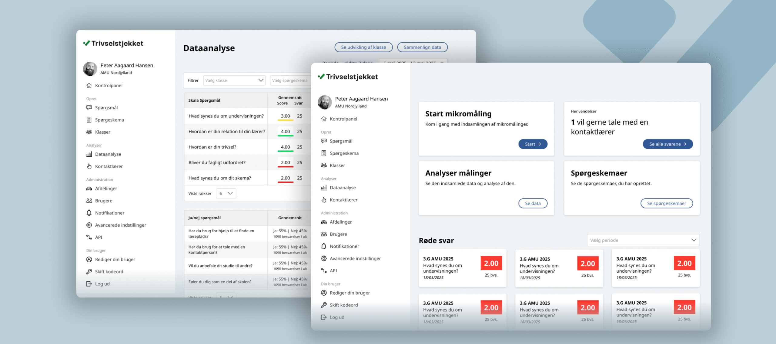 Trivselstjekket var live, fungerede som platform og gav brugbare målinger til skolerne, AMU Nordjylland og Aalborg Handelsskole. Udfordringen var, at platformen ikke var særlig brugervenlig. Nogle funktioner forvirrede mere end de gavnede, og navigationen var en rodet oplevelse. Derudover var der et ønske om at løfte det visuelle layout, for at præsentere en mere etableret platform.